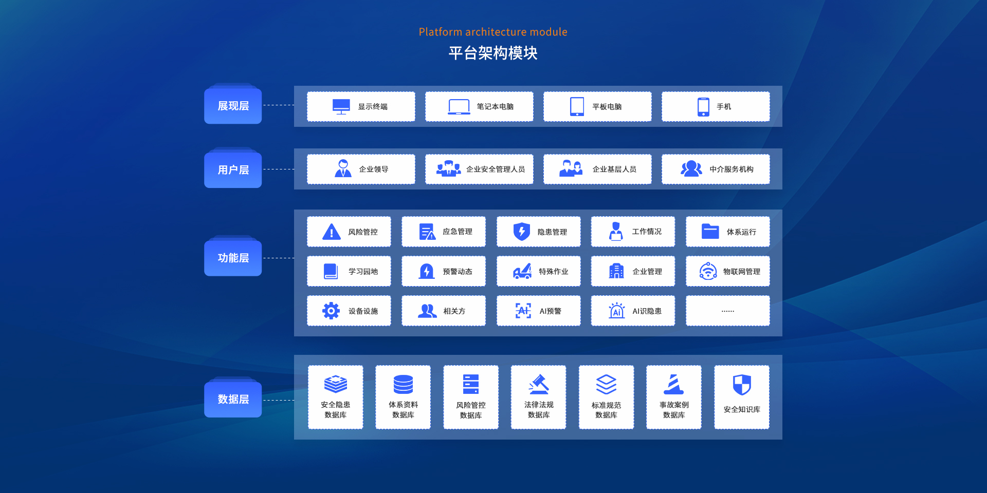 企業(yè)數(shù)智化安全管理平臺(tái)(俗稱企業(yè)端)匯集企業(yè)管理、風(fēng)險(xiǎn)管控、隱患管理、體系運(yùn)行、危險(xiǎn)作業(yè)、AI預(yù)警、AI識(shí)隱患、應(yīng)急管理、預(yù)警動(dòng)態(tài)、一會(huì)三卡、物聯(lián)網(wǎng)管理、相關(guān)方、設(shè)備設(shè)施、學(xué)習(xí)園地等功能于一體,旨在構(gòu)建標(biāo)準(zhǔn)化、規(guī)范化、便捷化的管理流程,引導(dǎo)企業(yè)自主開(kāi)展安全管理工作,建立健全全員安全生產(chǎn)責(zé)任制,全面提升企業(yè)安全管理數(shù)智化水平。