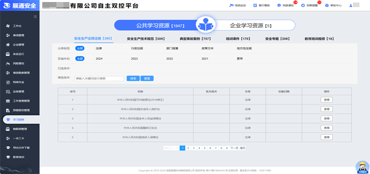 平臺(tái)配置法律法規(guī)、技術(shù)規(guī)范、典型事故案例、安全專題、培訓(xùn)課件等多個(gè)維度學(xué)習(xí)資料,并定期更新。企業(yè)可根據(jù)需要自主下載,也可上傳本單位學(xué)習(xí)資料,提高安全管理專業(yè)知識(shí)與技能水平。