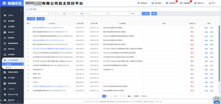 可根據(jù)需要及規(guī)則設(shè)定按月建立安全工作計(jì)劃,為安全管理提供便捷的管理工具。