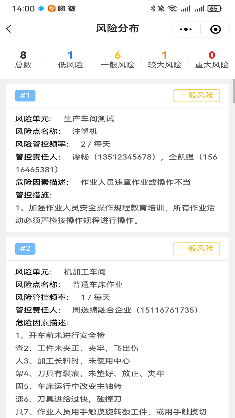風(fēng)險(xiǎn)分級(jí)管控,對(duì)應(yīng)管控層級(jí)、管控頻次、管控責(zé)任人、管控措施等一目了然,責(zé)任落實(shí)到人。
